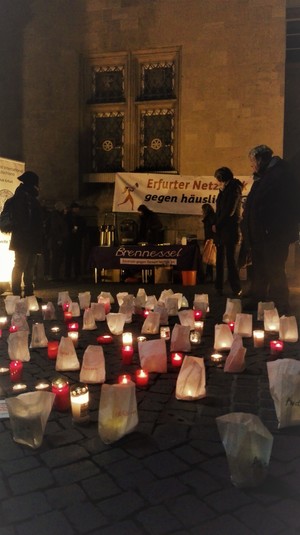 Wir waren zur Kerzenaktion am Erfurter Fischmarkt am Internationalen Tag gegen Gewalt an Frauen*