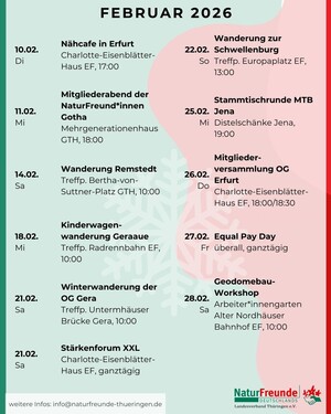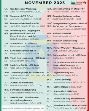 Seid mit uns NaturFreund*innen Thüringen auch im Dezember unterwegs in Sachen Demokratie, Nachhaltigkeit, Freizeit und...